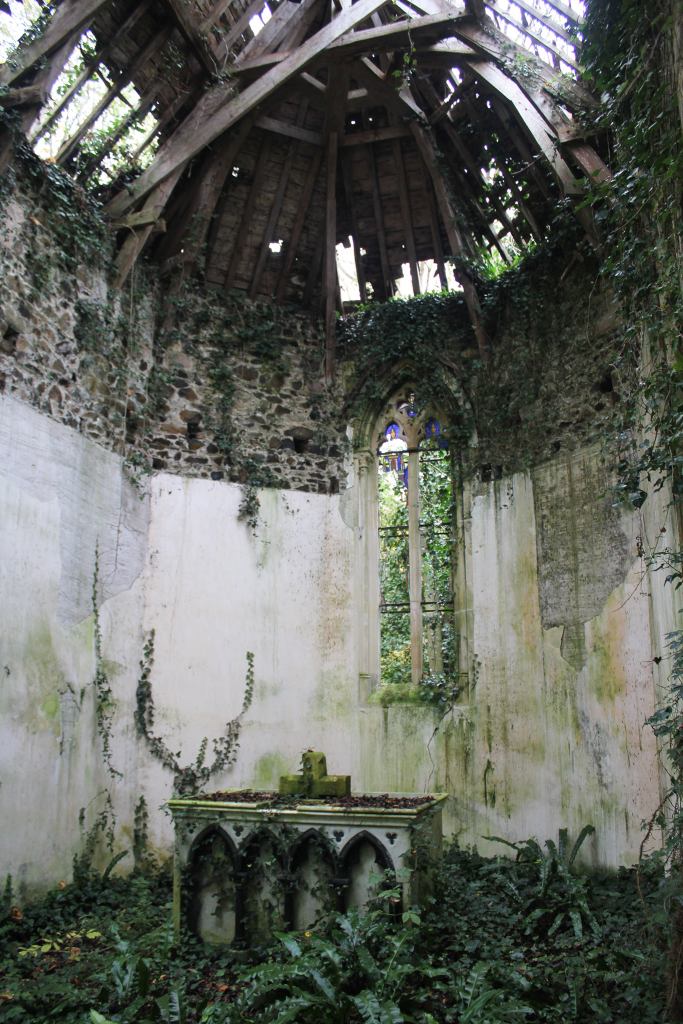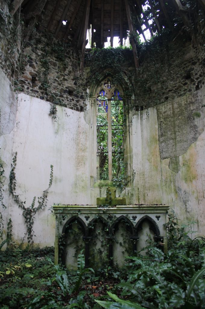 Situé dans un bois, cette chapelle ossuaire ne fut pas si facile d’accès. En effet il faut passer sous une végétation dense, passer les ronces avant d’arriver après une dizaine de minutes de marche difficile vers un chemin ou l’on aperçoit en contrebas cette chapelle grignotée par la végétation… Magnifique
