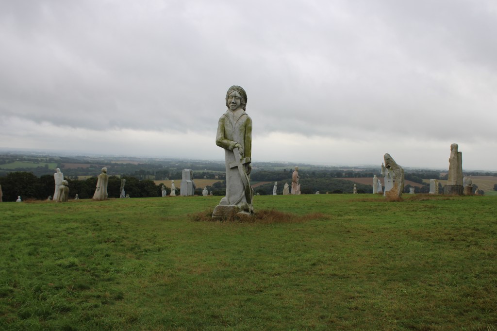 En cette première journée : Je décolle de bonne heure en voiture de Rennes, il est environ 7h/7h30 du matin mais avant d’arriver en terre Finistérienne, un petit passage dans les Cotes d’Armor, à la frontière du Finistère à Carnoët précisément. En effet on y trouve dans cette toute petite commune d’un peu plus de 600 habitants, un lieu étrange : La Vallée des Saints. Ce projet fou qui à vu le jour en 2008 à pour but de faire découvrir aux curieux plus de 150 statues géantes en granit certaines atteignant même 7m de haut. Ce lieu unique offre même un panorama naturel grandiose sur la vallée par temps ensoleillé