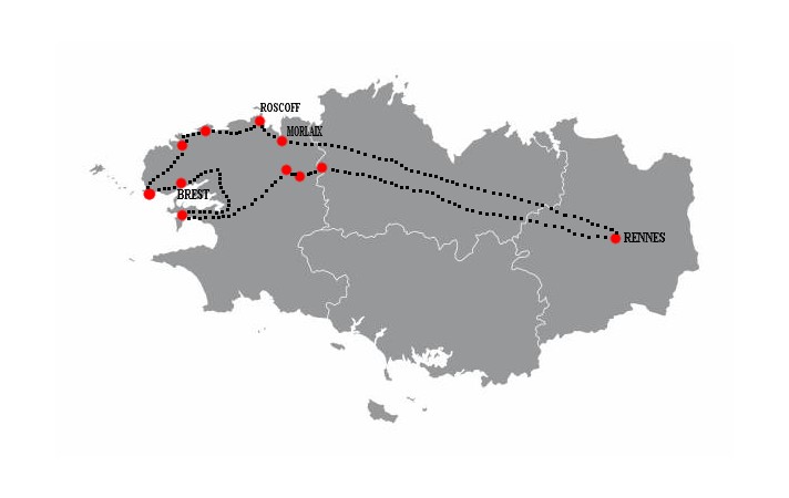 ● Phares ● Roscoff ● Morlaix ● Brest ● Crozon ● Vallée des Saints ● Huelgoat ● Mont D’arrée ● Morgat ● Meneham ● Route des Phares ● Plages ● Ports ● Presqu’île ● Port-Launay ● Chateaulin