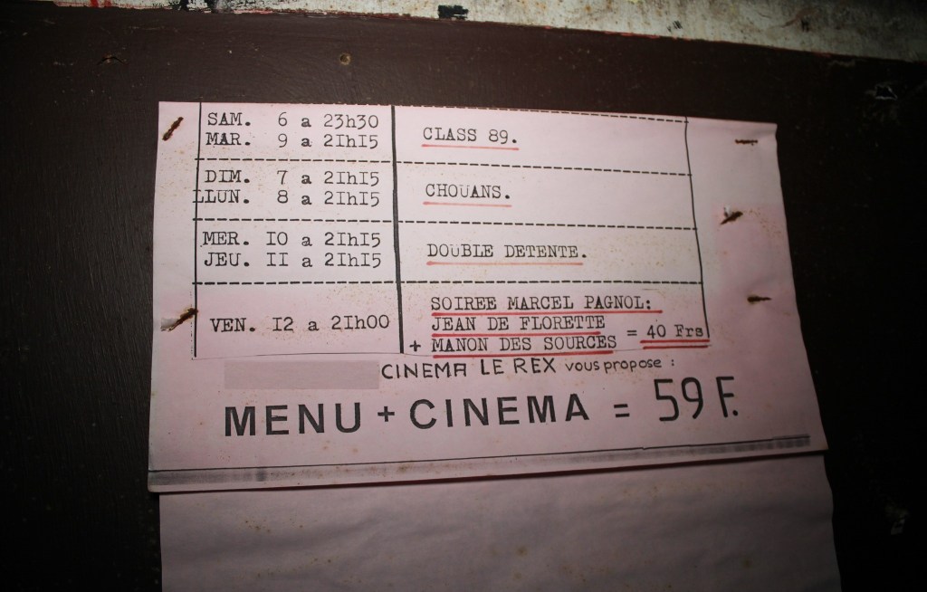 D’extérieur, nous sommes loin d’imaginer qu’il y avait un cinéma ici et pourtant en poussant les portes, nous avons la surprise de découvrir un cinéma d’une petite ville de quelques milliers d’habitants qui était surtout fréquenté par la population locale. Il aurait ouvert ses portes probablement dans les années 1940, sans plus de précision, sous le célèbre nom « Le Rex » qu’il gardera. Pendant de nombreuses années, les affaires du cinéma fonctionnent bien mais vers les années 70, avec l’apparitions des complexes cinématographiques en France et de la popularité de la télévision dans les foyers Français, le cinéma à bien du mal à se faire une place et décide pour se démarquer de se développer en proposant des menus et une restauration sur place pour quelques francs seulement