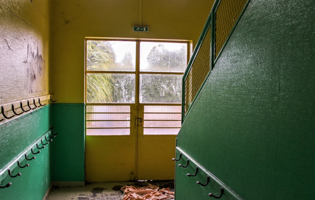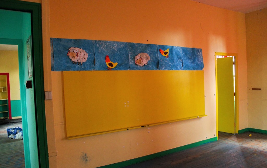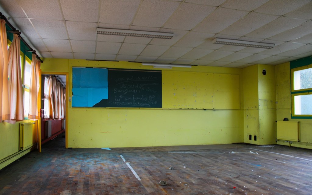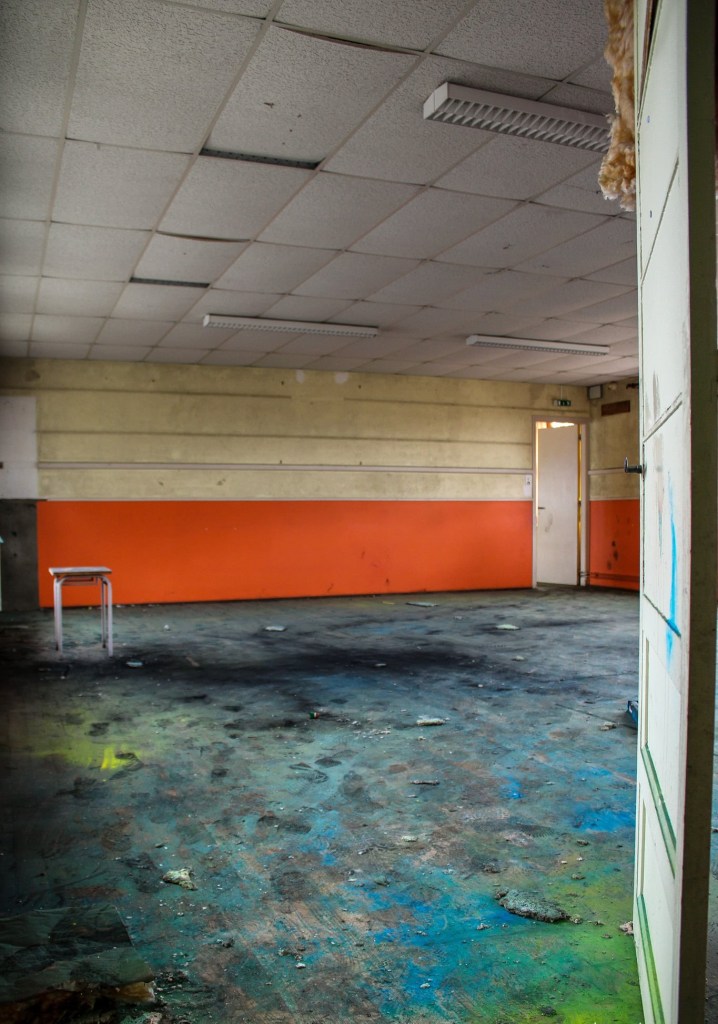 C’est donc depuis fin 2018 que cette école est à l’état d’abandon. Lors d’un après-midi de janvier 2021, je me décide d’aller l’explorer tout en me faisant très discret car en effet celle-ci se situe en pleine ville, dans une zone passagère, entourée de maisons et bâtiments administratifs mais aussi situé face au commissariat de police. Il à fallu se montrer malin et s’y faufiler rapidement pour pouvoir y accéder. Bien que les pièces sont relativement vides, l’exploration est agréable et j’aime beaucoup ce panache de couleur dans les différentes salles