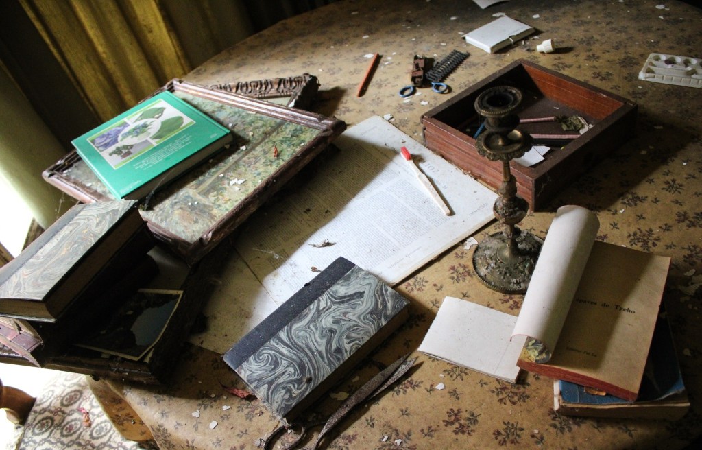 A l’intérieur les vols et les pillages sont bien présent mais le lieu semble bien figé dans le temps et de nombreux objets, meubles sont encore sur place tout comme une ancienne voiture