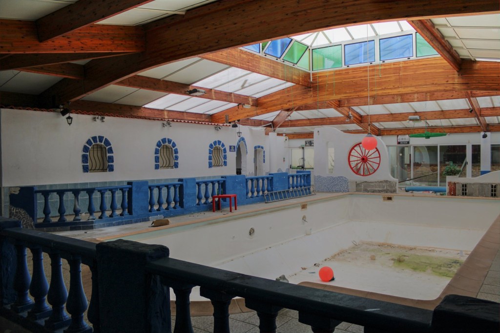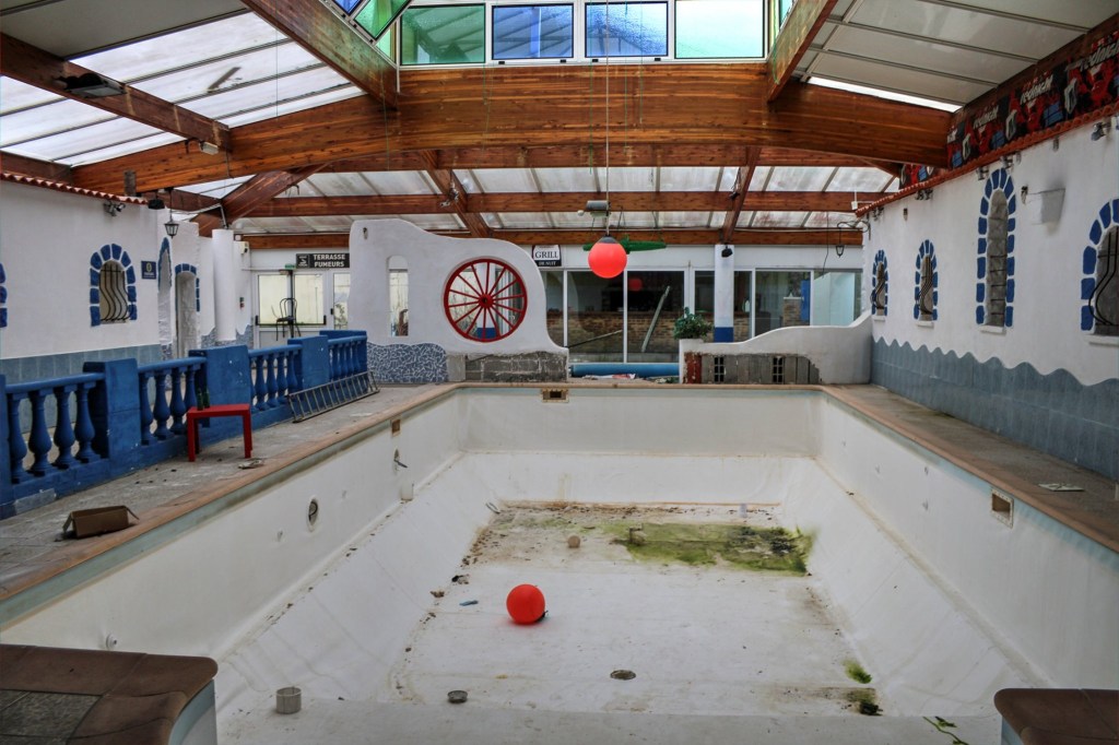 Aujourd’hui c’est un immense complexe désertique abandonné avec son matériel qui attend toujours les clients. J’ai eu beaucoup de mal à explorer ce lieu à l’époque, en effet aucun accès était possible hormis une porte de secours cadenassé avec une petite ouverture à ce niveau, après plusieurs minutes à tenter, je réussis enfin à rentrer difficilement