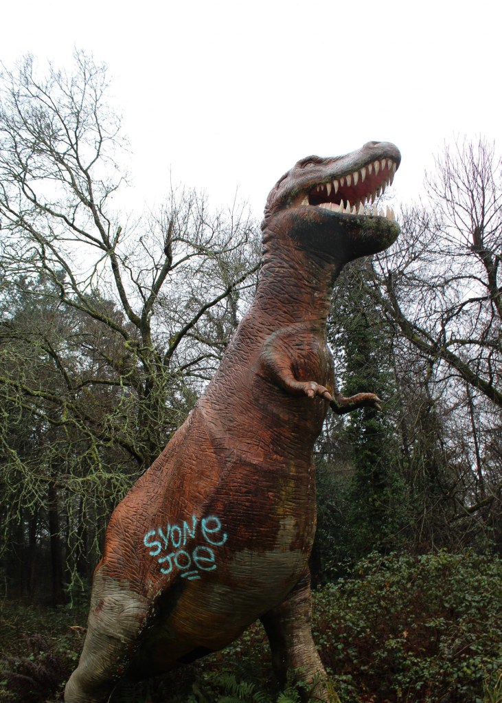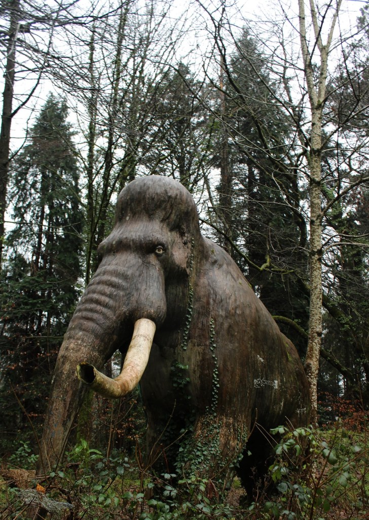 C’est au bout d’une impasse en friche longue de 500m, perdu en pleine forêt, qu’on y fait une drôle et impressionnante découverte. En effet un parc préhistorique devait voir le jour et ouvrir ses portes dans les années 80 ici, quelques installations et bâtiments y sont présents mais malheureusement le propriétaire ne concrétisera pas son projet puisqu’il décèdera peu de temps après et la zone est aujourd’hui protégée mais aussi délaissée. Sur place le lieu est devenue un lieu fantomatique et il ne reste pas grand chose. On peut y apercevoir un imposant tyrex ou mammouth ou encore un singe assez flippant. Une exploration très atypique dans un cadre idyllique