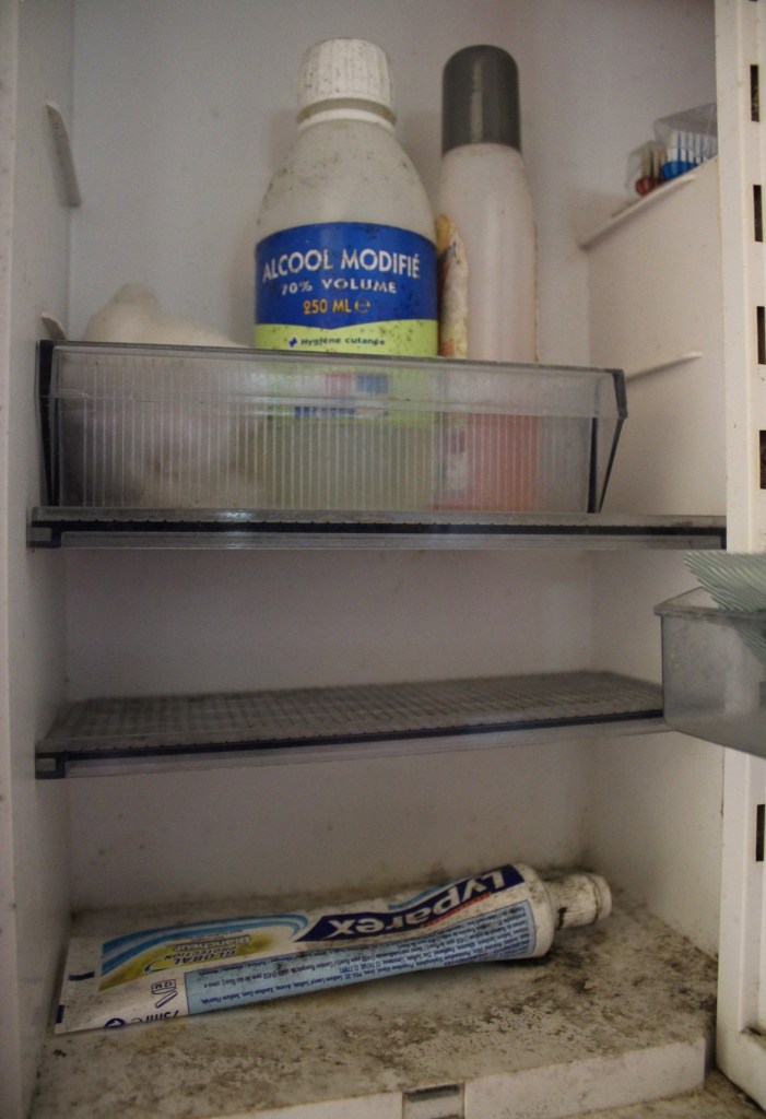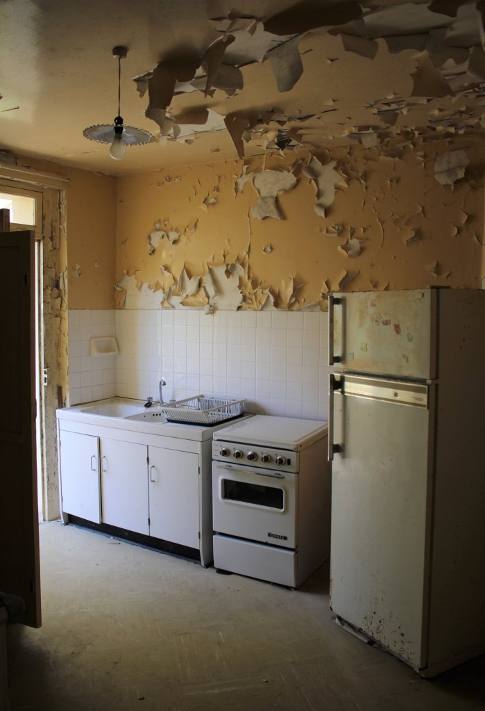 Quelques documents et objets personnelles sont encore restés sur place et la cuisine aux murs décrépits donnent un côté très sympathique. Une agréable exploration et un bon dans le temps avec ces couleurs et ce côté vintage très présent