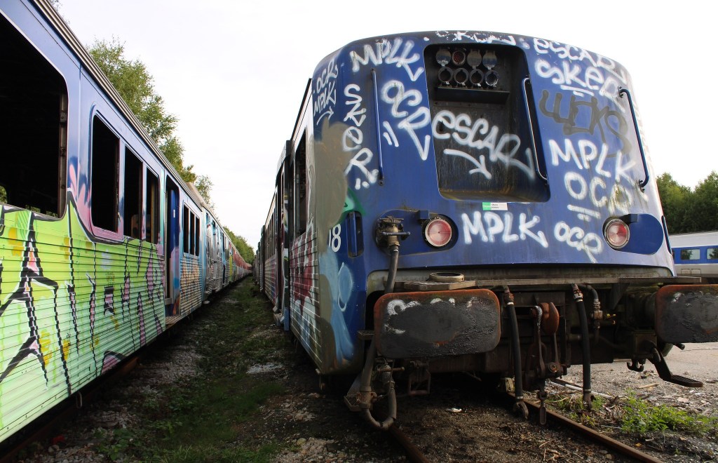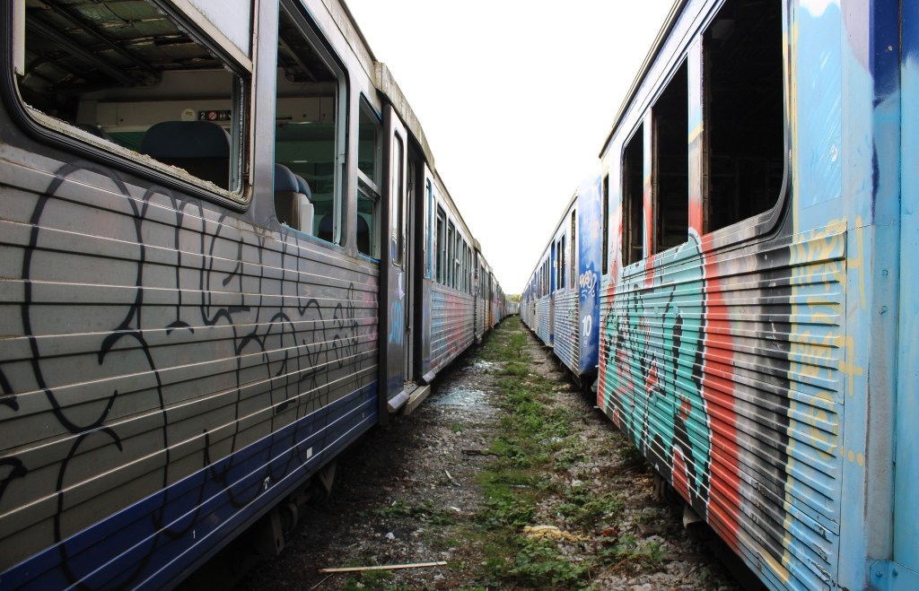 Des trains dont le voyage s’arrête définitivement ici et qui attendent sagement leurs triste fin