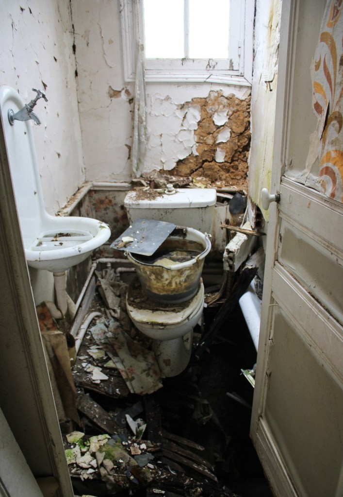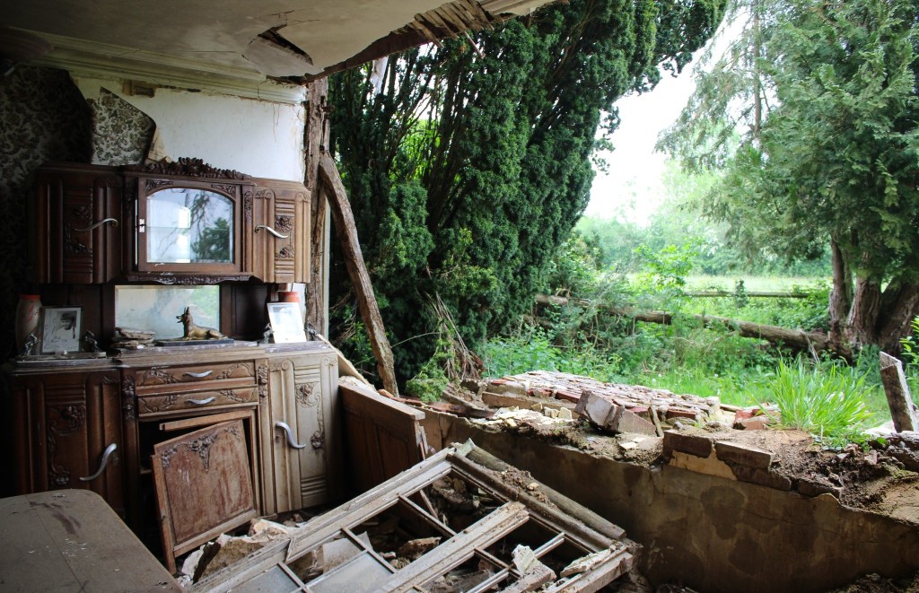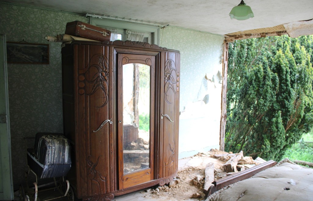 En effet la maison est faite de torchis et suite au manque d’entretien et avec le temps, celle-ci s’est dégradée provoquant ainsi un effondrement partiel de la façade avec des étages et un grenier aux sols instables