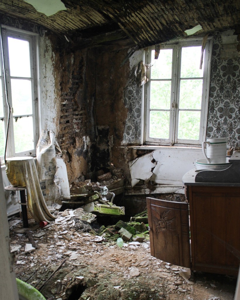 En arrivant face à cette maison, celle-ci impressionne et questionne. Comment peut-elle perdre une partie de sa façade et pourquoi est-elle à l’abandon ?