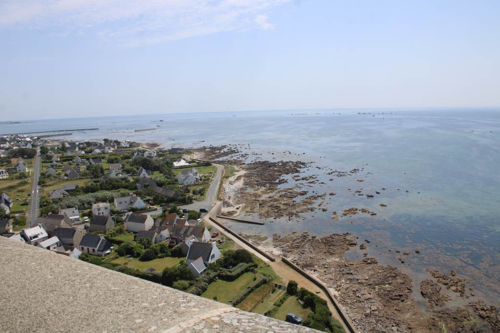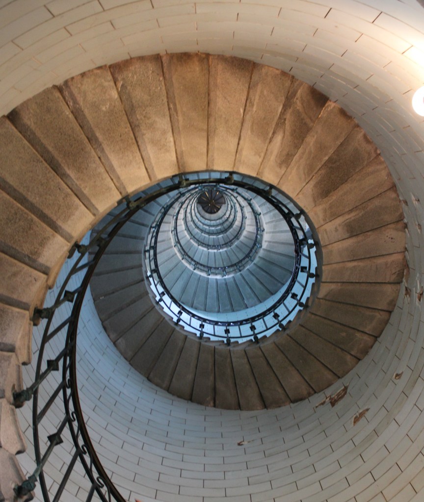 J’arrive donc au dernier pallier qui donne accès à une salle en boiserie où est installé fièrement la statue en bronze du Prince d’Eckmühl. Je reprend un peu mes esprits et la peur à pris le dessus. Je décide d’aller vers l’extérieur, sur la balustrade dont la vue m’hypnotise immédiatement. Une vue sur toute la presqu’île de Penmarc’h, par un temps clair et dont mon vertige s’est totalement dissipé. En regarde vers le bas, dans le vide, je ne suis même plus impressionné, effrayé, je suis totalement happé par cet incroyable vue panoramique. Après de nombreuses minutes à 65m de haut à contempler cette magnifique vue, je redescend le phare en n’ayant plus aucune appréhension. Je regarde dans le vide, je m’approche de la rampe, prend quelques photos de cet escalier en colimaçon remarquable et la peur de vide semble avoir totalement disparu. Je me sens serein et presque déçu de devoir redescendre. Une fois sur la terre ferme, j’admire encore une fois la beauté de ce monument et me dirige vers la ville emblématique des pêcheurs : Guilvinec